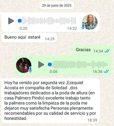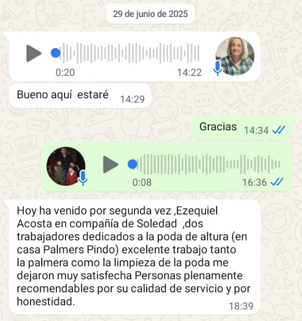 Con más de 10 años de trayectoria, brindamos un servicio seguro y especializado en poda y tala de árboles y palmeras, garantizando resultados responsables y clientes satisfechos en cada proyecto.